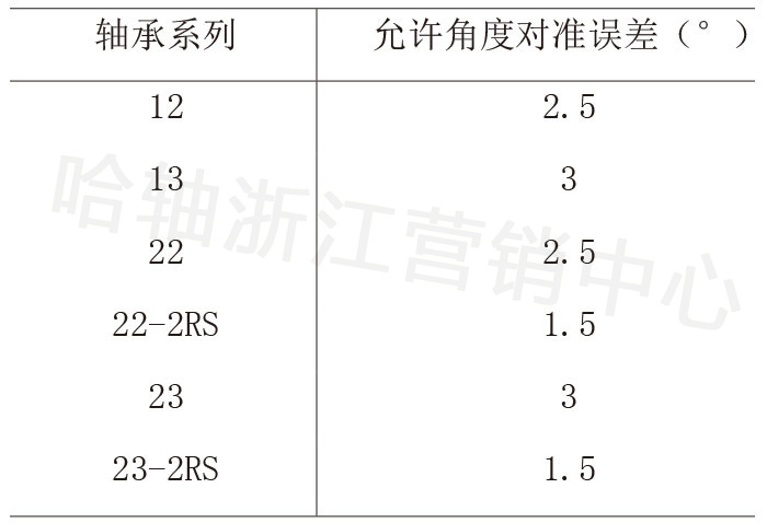 正常运行状态下,角度对准误差的最大允许值见下表。是否能用到最大值取决于轴承配置的设计及油封形式等。