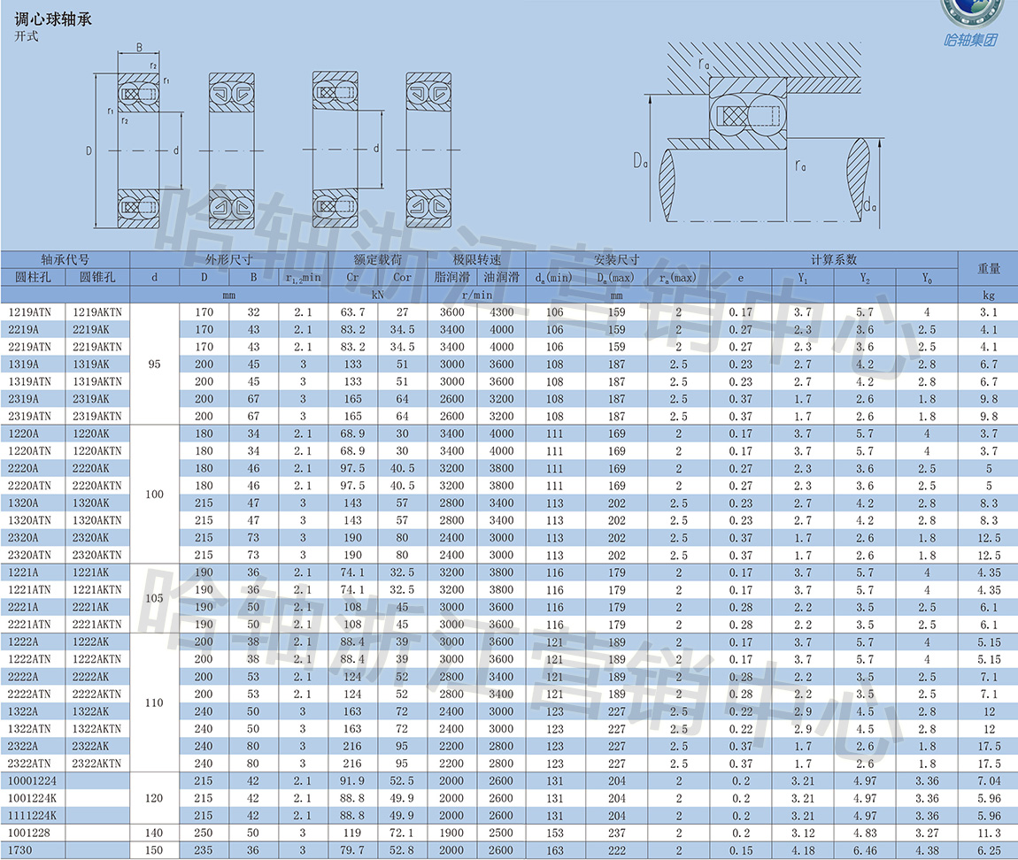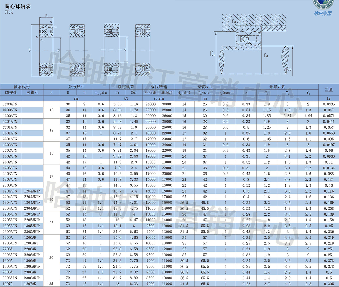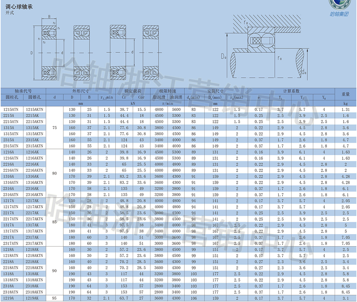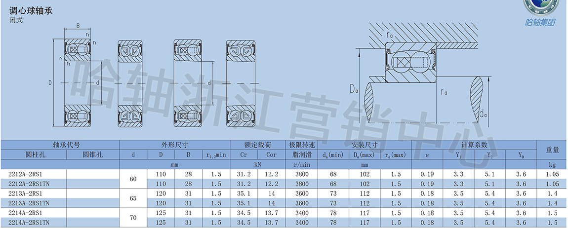 HRB调心球轴承具有普通级公差,也可提供精密型 P6、P5 产品。公差等级可查表得知。